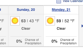 Fortunately we'll probably have clear skies, but it's shaping up to be a cold start to the tournament. It'll probably be windy too. I'm expecting temps in the 40s at tee-off and eventually rising to a more comfortable level, so some serious thought will have to be put into the layering of clothes and what not.