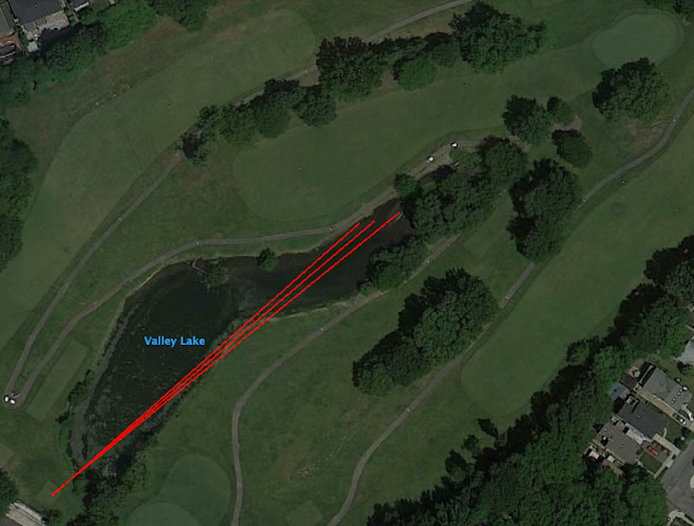 It's a devilish kind of hazard because it's easy for the rank amateur to think he is aiming well left when he actually might be setting up for a big over-the-top slice into the water. Which is probably what happened to me. Thrice. Clearly I had a momentary swing breakdown. Looking back though, the third ball in the water was probably more a failure to recognize said breakdown and re-strategize accordingly.