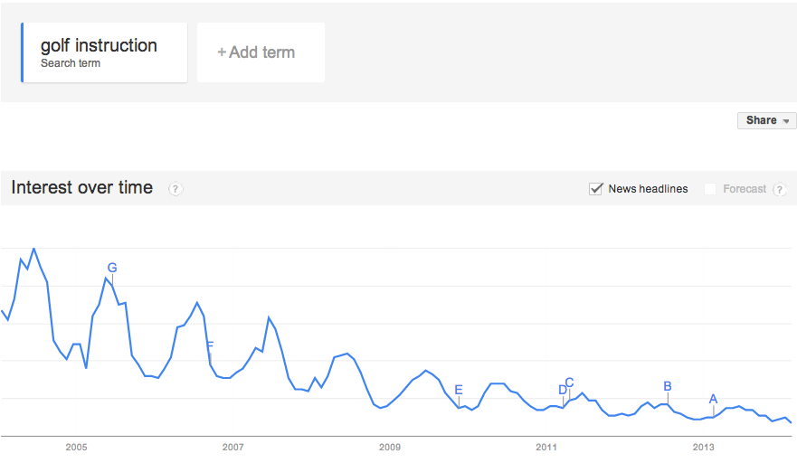 Of course "golf" isn't exactly a useful term--who the hell types "golf" into the Google? So let's take a look at some more realistic searches and see if we can't get a pulse on the golf cosmos.