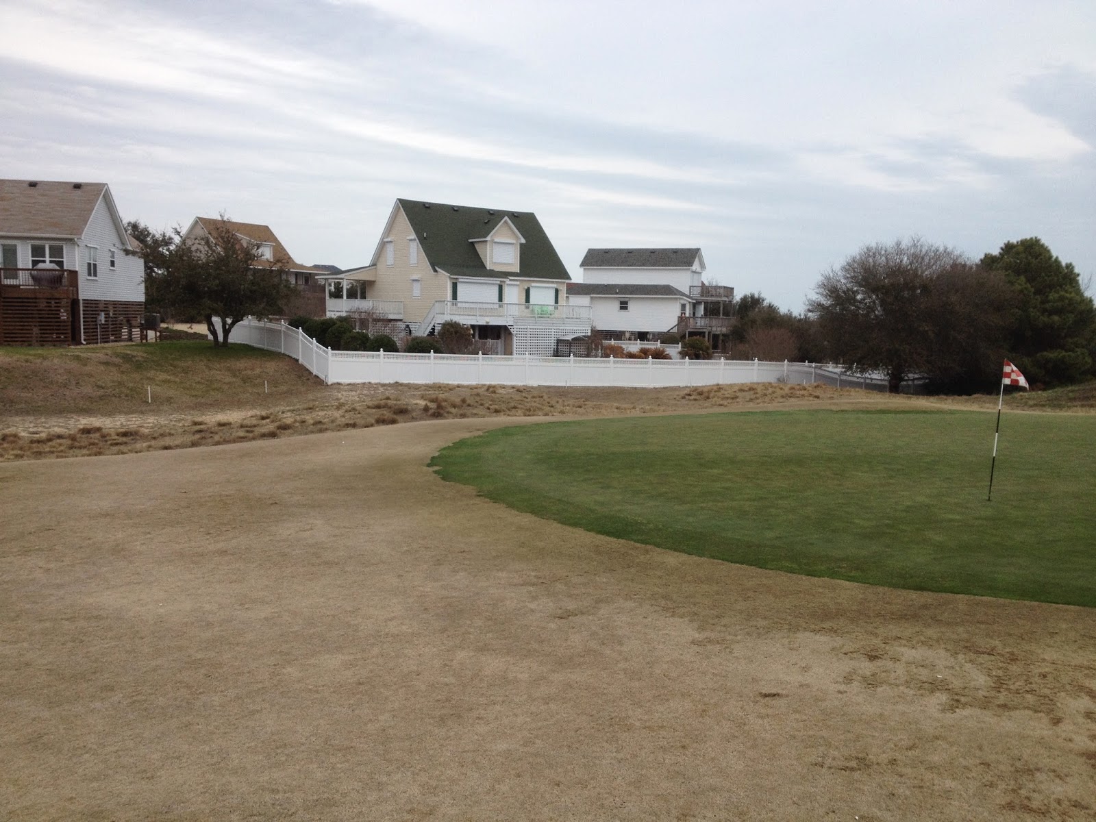 ReplyDeleteThe dormant grass is Bermuda, the common grass found south of the Mason-Dixon line. It thrives in hot weather but goes dormant in most places, even Florida, during the winter. Typically course over seed with an annual Rye grass. If the course it on a budget, they over seed the greens, like here. Fancy courses will over seed the greens and fairways (not the rough). The Rye grass dies when the heat comes and the Bermuda starts to grow.