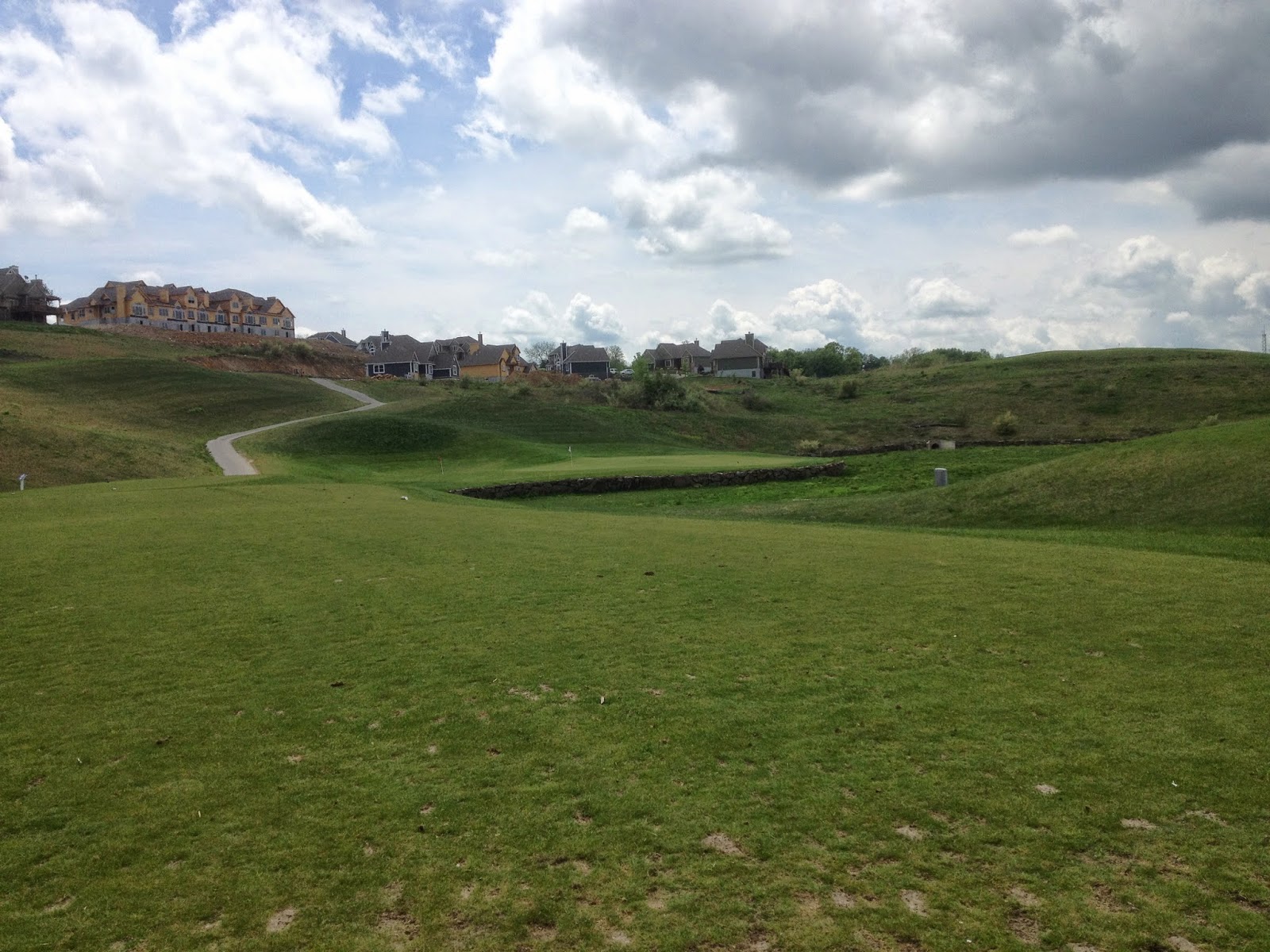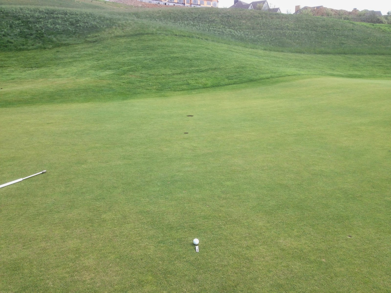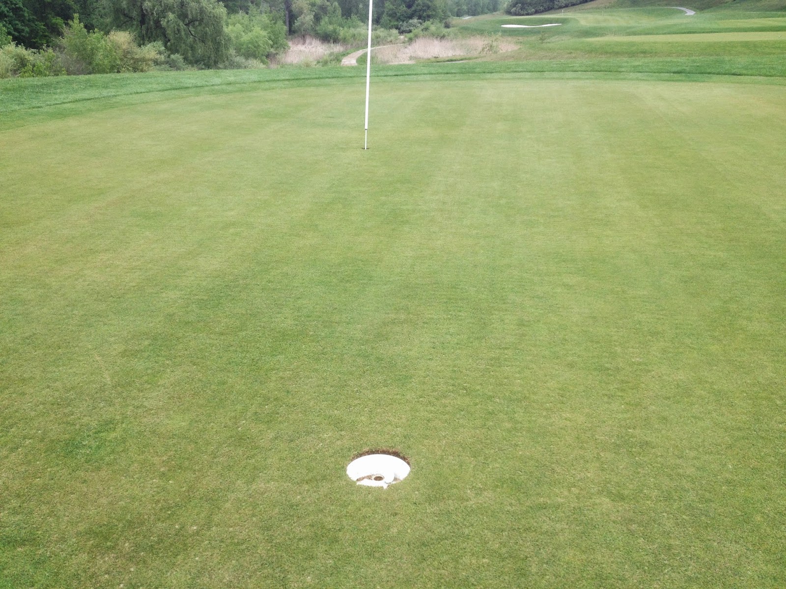 3rd hole I hit what I thought was a good pitch to an elevated green. It rolled toward the flag then disappeared. Hmm, there must be a drop off in this green...