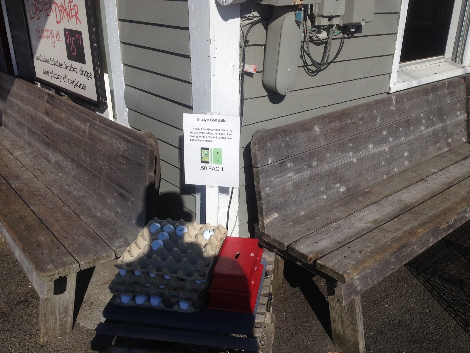 No plastic trays here. And I like that. Whatever might get called ghetto in or around the city, out here is just rustic. I'm just glad to be here period. Getting to play golf or even hit balls, it's all bonus. A few of these balls are really banged up and don't even fly right. No matter. If you've not been to Maine, you really should.