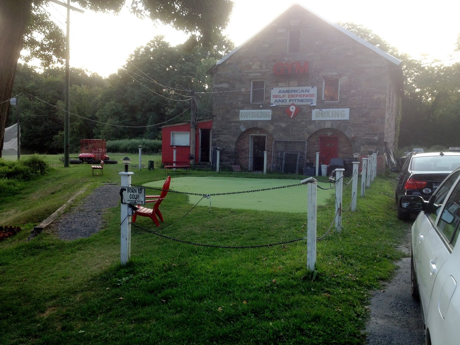 It's probably not surprising that I had a great practice here at the Scoring Zone. A transcendent practice. No matter that I was hot and tired from an afternoon of hiking up and down big rocks (and in and out of outlet stores), no matter that I'd been feeling a little bit lost with my swing over the previous week. Out here in the quiet, woody, summery air I could stand over the ball and actually think about stuff and have it make sense. I bet that's just par for the course here at the Scoring Zone. Of course then I thought back to my golf-home, and hitting balls from a cage out over the Hudson River, and what a cluttered, distraction-filled, claustrophobic and ultimately plastic experience it is, and how I never seem to have a good practice session there.