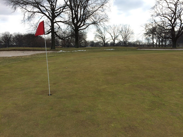 I wasn't able to play in that window, which at the time I had with sadness assumed was a singular opportunity. The next snowstorm covered everything in a thick frosting, but again warm temperatures came and rescued the golf season. The turf has cleared, but the struggle is not over--later this week we're due to be hit by an arctic cold front and insane low temperatures. For now though another painfully brief window has opened. Conditions are not exactly nice, but some people would call them playable. I am one of those people. For God's sake our golf season is teetering on an existential knife edge. It is time to seize the opportunity.