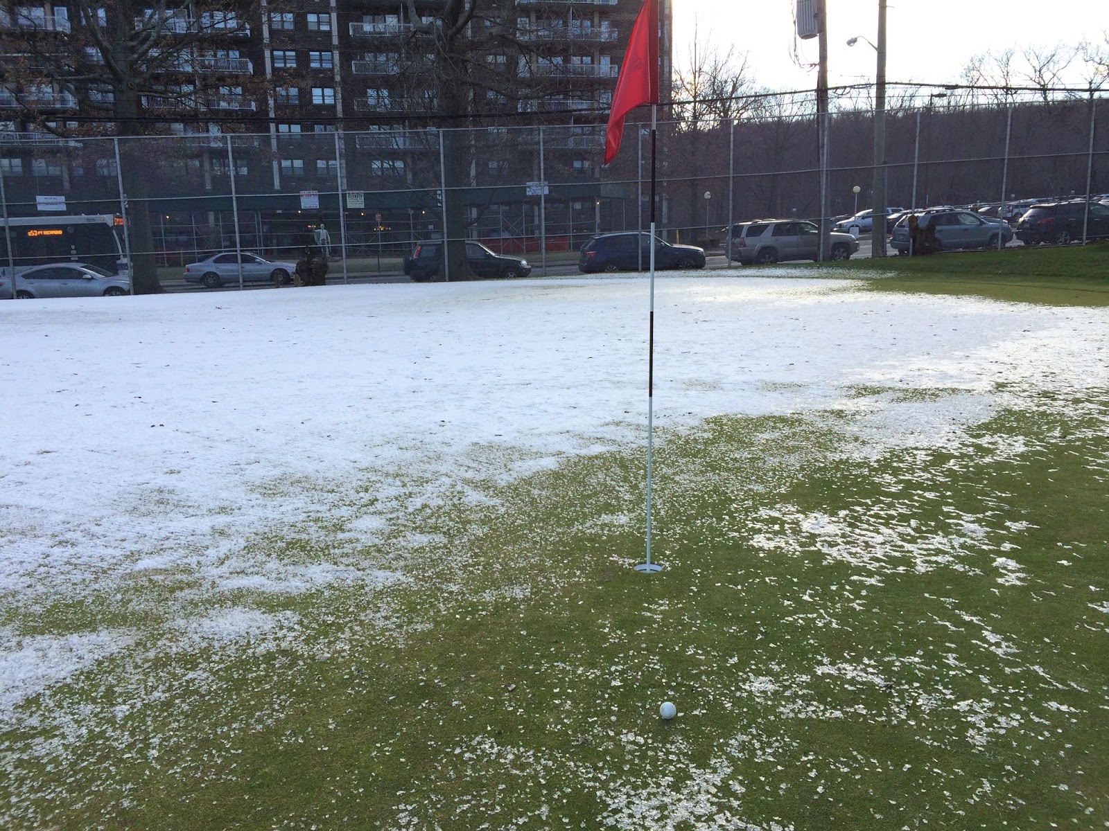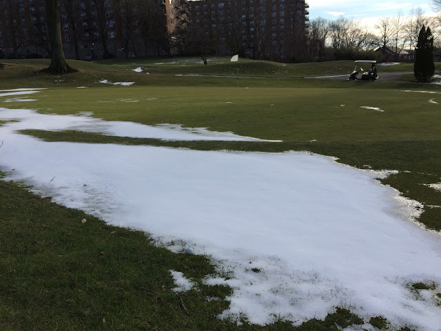 I called up the course, they said, "Yes it's open, but it's cart path only, and there's snow on some of the greens." No buts, you had me at "yes" dammit.