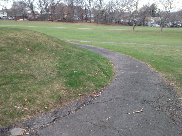 A few holes got away from me, but that is wont to happen in a harsh unforgiving winter landscape. While the temps were bearable, a lot of the golf course was still frozen from last week's arctic cold spell. A lot of balls bounced hard. You needed a hammer to get a tee into the ground. Those not quite that prepared spent a lot of time stooped over, hunting for pre-existing holes. In a couple desperate moments I resorted to making a little heap out of dirt, and setting the ball on it.