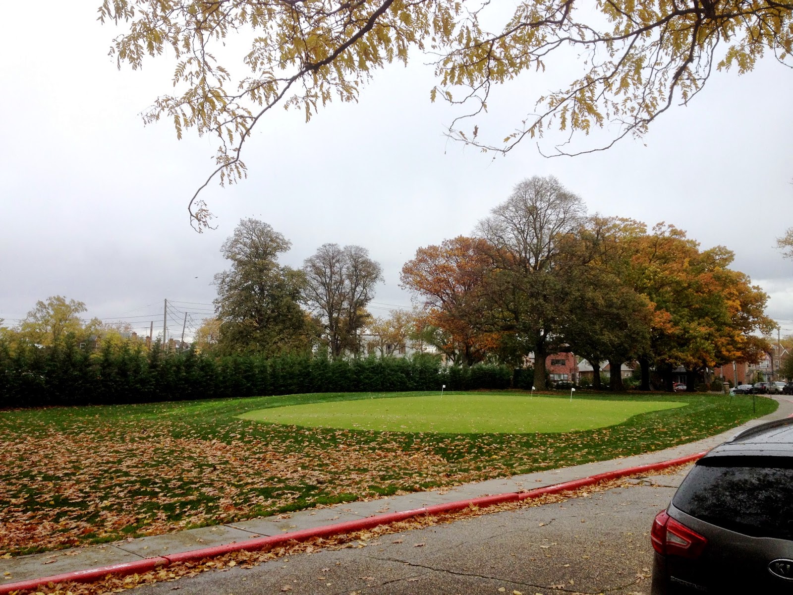 Tons of leaves everywhere make golf a perilous sport. Who cares? I'm flying through an open course.